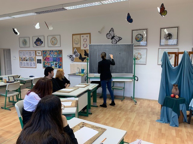 A felvételi előkészítő két foglalkozásán jó hangulatban munkálkodtunk. Az első alkalommal a mintázási feladatot gyakoroltuk, miközben Farkas Zsolt szakoktatótól a kivitelezéshez javaslatokat, hasznos ötleteket kaptunk és ügyes fogásokat leshettünk el! A foglalkozás végére egyéni kreatív ötletek alapján egyedi darabok is készültek! A 2. foglalkozáson Csitári-Szaller Andrea tanárnő útmutatásait követtük a beállított csendélet kompozíciójának felrajzolásában és megfestésében!